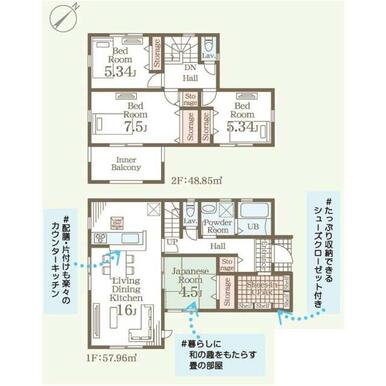 建物面積 | 106.81㎡ | 土地面積 | 164.49㎡ |